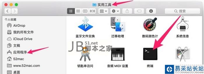 打開“終端”。終端在 應(yīng)用程序 文件夾下面的 實用工具 文件夾中,圖標是黑色的,如下圖。