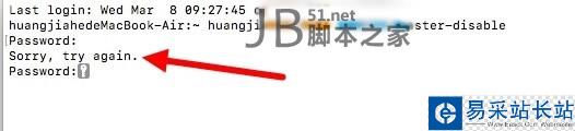 如果出現(xiàn) Sorry, try again. 如下圖,說明你輸入的密碼錯誤了,意思是讓你重新再輸一次試試。