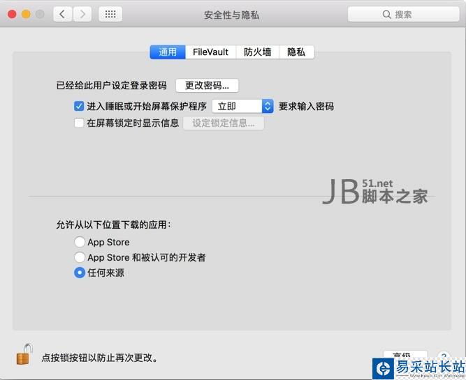 現(xiàn)在我們 重新打開 系統(tǒng)偏好設(shè)置 -> 安全性與隱私,你會發(fā)現(xiàn),已經(jīng)有“任何來源”這個選項了,如下圖(還是沒有的話,就重啟下電腦試試)。
