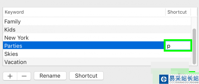 4.輸入 一個(gè)字母。 此快捷鍵可與Option鍵(Option + P)配合使用,以快速標(biāo)記照片。完成后點(diǎn)擊確定。
