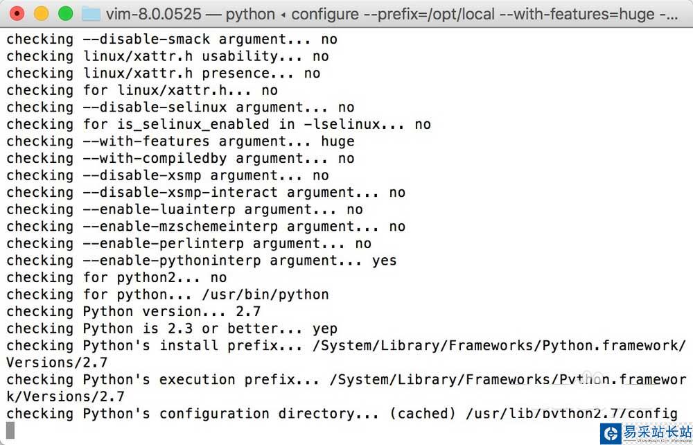 4、進(jìn)行環(huán)境的檢測(cè)和安裝路徑的設(shè)置,./configure --prefix=/opt/local --with-features=huge --enable-pythoninterp=yes --enable-multibyte --with-vim-name=vim --with-python-config-dir=/usr/lib/python2.7/config