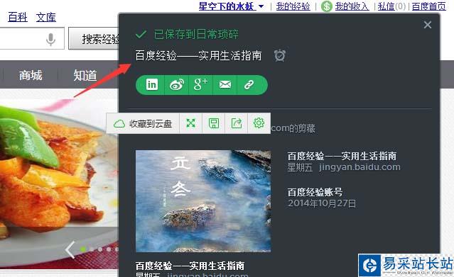 6、第三個功能是剪藏網(wǎng)址,點擊這個功能,會將網(wǎng)頁網(wǎng)址剪藏至你的印象筆記賬號,可以在多終端查看。