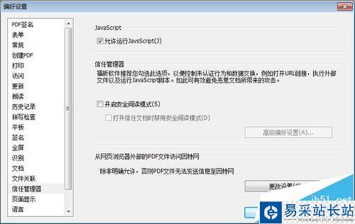 2、如果是Ribbon模式,點擊“文件”——“偏好設置”,選擇"信任管理器”,去掉”開啟安全閱讀模式“前面的款里的勾勾,然后再選擇”朗讀“,各項均打勾。