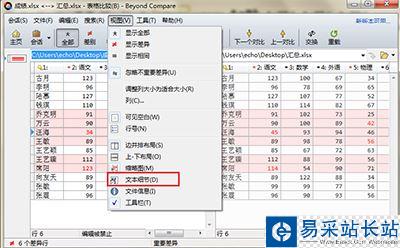步驟三:如果您想要再次顯示文件細(xì)節(jié)欄目,單擊表格比較會(huì)話界面工具欄“視圖”按鈕,在展開的菜單中選擇“文本細(xì)節(jié)”選項(xiàng),即可再次顯示文本細(xì)節(jié)內(nèi)容。