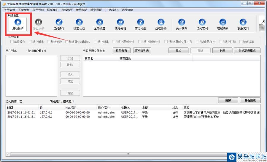 試用版默認認開啟了“監控操作”、“禁止刪除”和“禁止復制文件內容”等三項功能。你只需要打勾即可生效。
