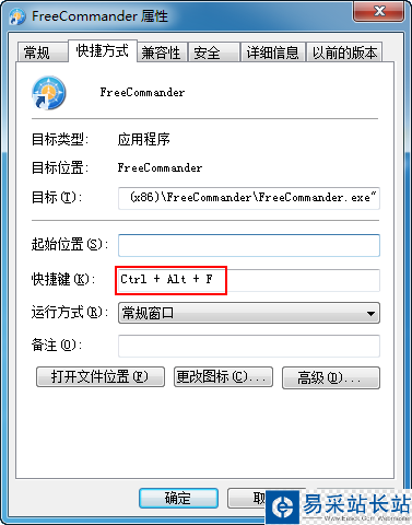 (02)在FC屬性對話框中設置FC的快捷鍵為Ctrl+Alt+F。如下圖1-02所示: