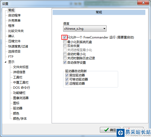 選中該項之后,只能允許運行一個FreeCommander程序。若不選擇的話,允許多個FreeCommander同時允許。