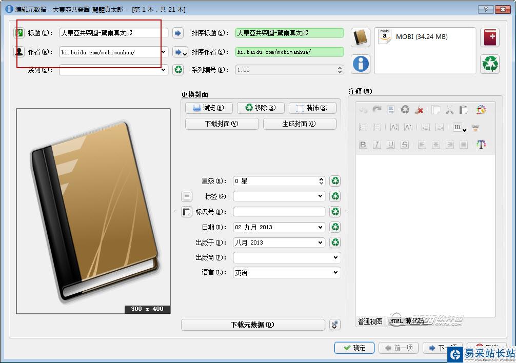 mobi,epub等都是在網絡上流行的電子書格式,因為有適應屏幕的特性和效果,所以受到了電子書作者和讀者的歡迎。大家都知道,網絡上電子書的來源很復雜,良莠不齊,經常有作者和書名的元數據被寫錯的情況。那么該如何修改mobi和epub電子書的元數據呢?使用calibre就可輕松搞定。