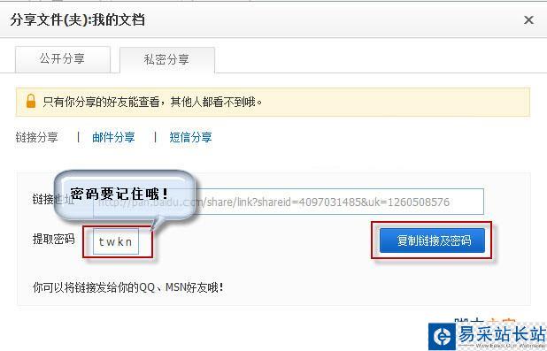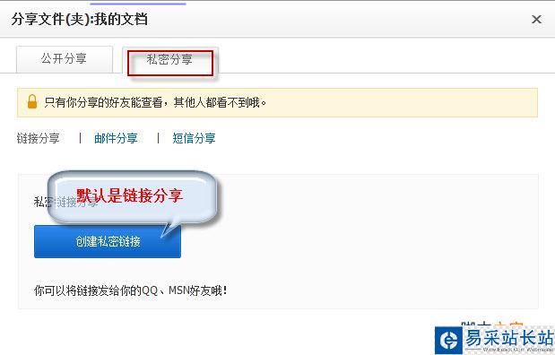 接著上一步,我們點(diǎn)擊分享后,可以看到有公開分享和私密分享兩種功能,我們當(dāng)然選的是私密分享,私密分享默認(rèn)的是創(chuàng)建私密連接。