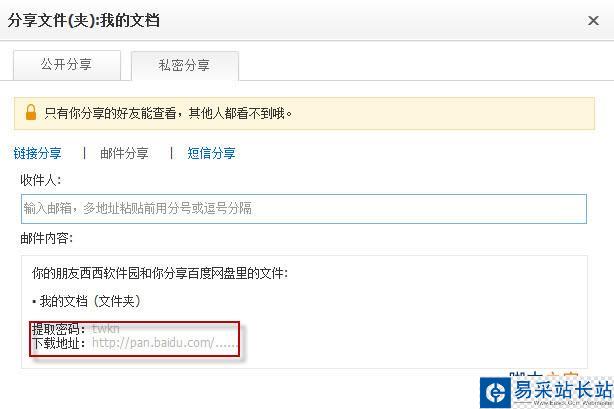 錯(cuò)新站長(zhǎng)站不是經(jīng)常使用百度網(wǎng)盤,算的上是一個(gè)新手了。但是經(jīng)常在網(wǎng)上遇到一些人,他們創(chuàng)建的分享鏈接大都是加密的,也就是所謂的私密分享。小編還沒有用過百度網(wǎng)盤的這個(gè)功能,今天和大家一起來了解下吧!