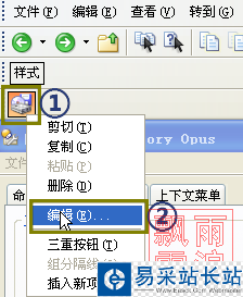 5. 在工具欄空白地方點擊右鍵并選擇“自定義”,然后右鍵點擊剛才建立的那個“驅(qū)動器按鈕”的圖標(①),選擇“編輯”(②),如圖5。