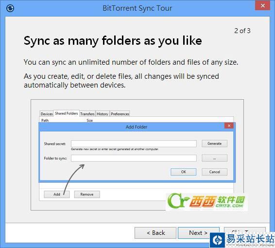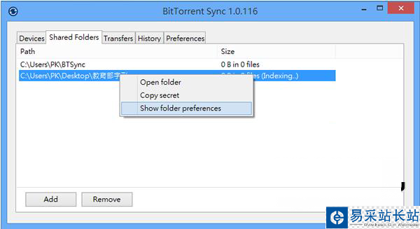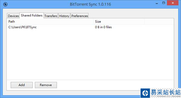 1.開(kāi)啟 BitTorrent Sync 軟件后,會(huì)看到安裝時(shí)所預(yù)設(shè)要進(jìn)行文件分享、同步更新用的文件夾,若要新增其他共用文件夾的話(huà),可點(diǎn)擊[Add],選取文件夾。