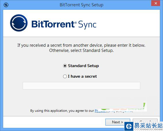 2.若有可下載別人文件用的 secret ,可選擇 I have a secret 來(lái)貼上后,點(diǎn)擊[Next],若無(wú),可選 Standard Setup 來(lái)繼續(xù)安裝。