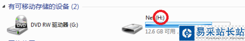3、注意:代碼中的黑體“X”是指你的U盤在計(jì)算機(jī)上的硬盤代碼,例如下圖就要把“X”改寫為“H”才行。上一步執(zhí)行完,U盤就已經(jīng)修好了