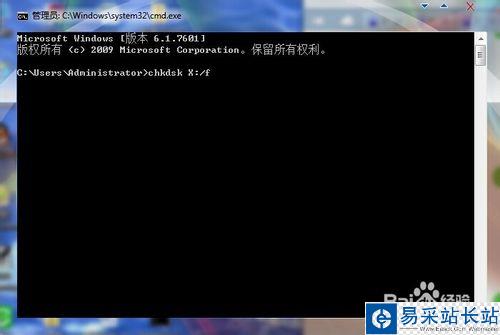 2、在出現(xiàn)的命令提示符窗口內(nèi)輸入“chkdsk X: /f”,然后點(diǎn)enter鍵,。
