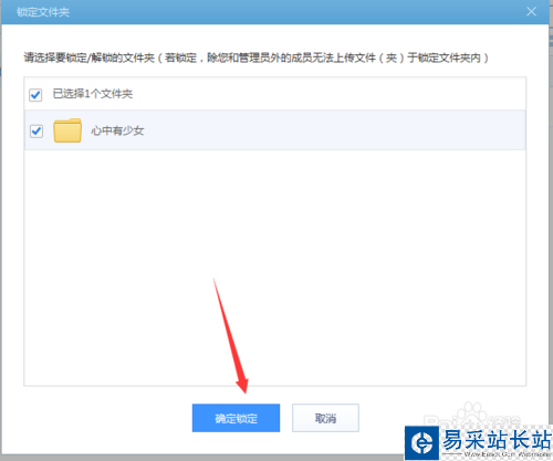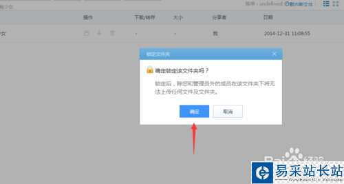 7、點擊之后,會有一個提示,提示你鎖定之后,只有管理員或者群主才能夠向里面上傳東西,我們點擊【確定】即可。