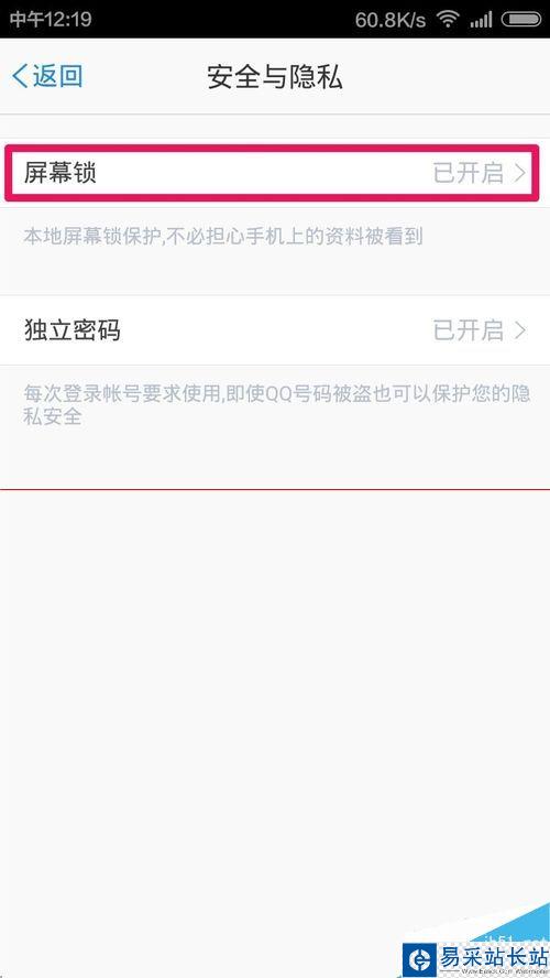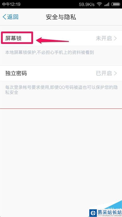 5、安全與隱私中點(diǎn)擊屏幕鎖打開進(jìn)行設(shè)置!