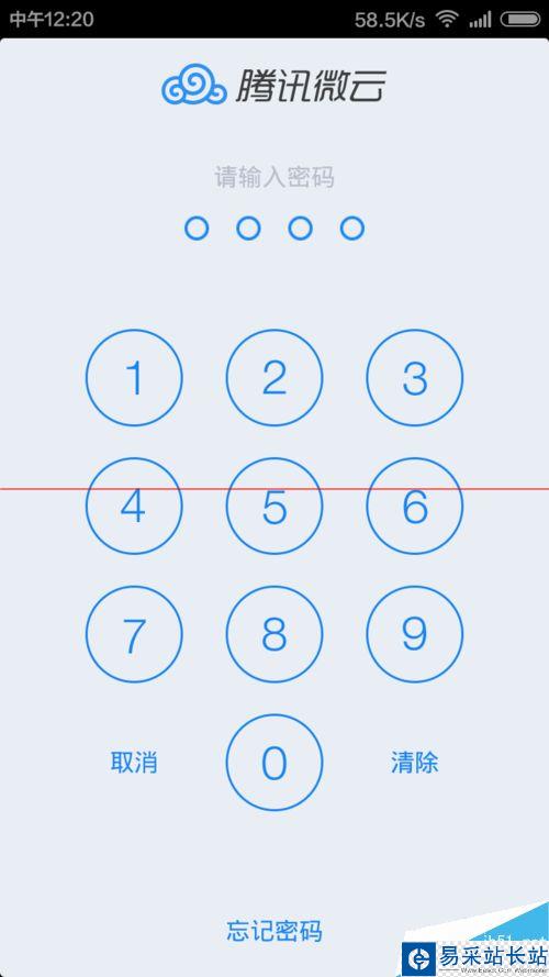 7、設(shè)置好屏幕鎖以后,打開騰訊微云的時(shí)候需要先輸入密碼才可以進(jìn)入!
