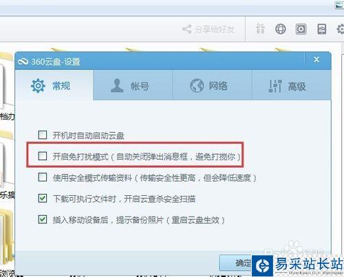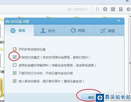 4、點擊確認保存,這樣360云盤再也不會自己跑出來打擾你了。