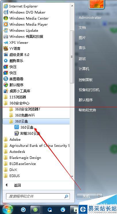 解決方案二:打開開始>所有程序>360安全中心>360云盤