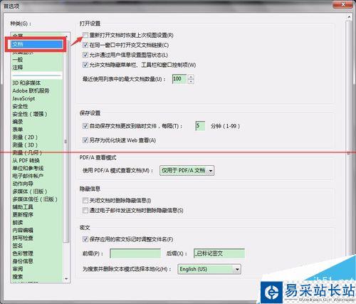 第三步點擊“文檔”,勾選“重新打開文檔時恢復上次視圖設置”。然后點擊確定。
