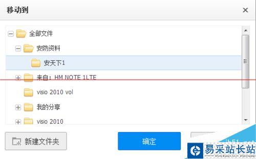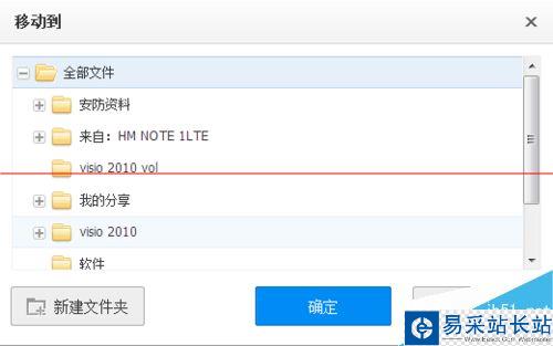 2、點擊【移動到】選項,彈出移動到窗口,通過該窗口也可新建文件夾。接下來選擇要移動到的文件夾,點擊【確定】按鈕,即可將該文件移動到選擇的文件夾內,如下圖所示。