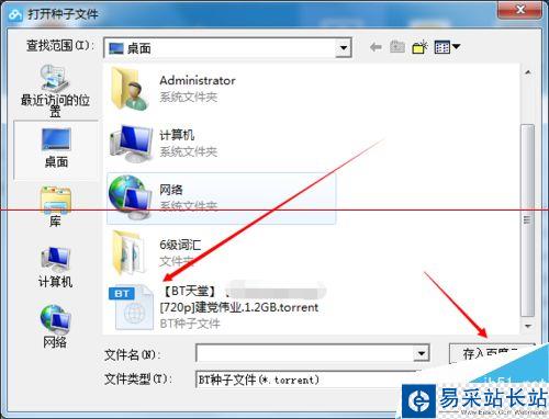 3、點擊選擇電腦本地的下載好的bt種子,然后選擇存入百度云