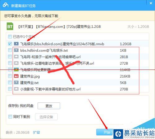 4、然后百度云會自動為我們勾選好要下載的電影,其余的一些都是無用的,我們忽視即可,然后點擊開始下載即可