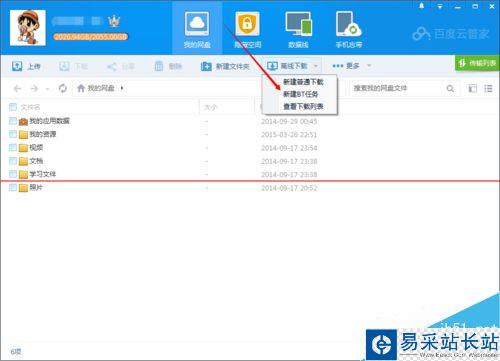 2、下載好bt種子后,我們打開百度云管家,然后點擊頁面如圖所示的離線下載旁邊的小三角,然后選擇新建bt任務