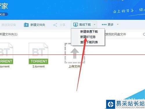 3、點擊如圖所示的“離線下載”——新建BT任務,或者直接雙擊剛才上傳的BT文件。