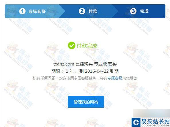 3、點擊“免費升級專業版”給自己的網站開通便可。如下圖:
