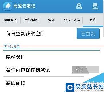 1、有道云筆記還有一個手機客戶端,里面可以每日簽到獲取一定量的免費空間,這個獲取到多少完全憑個人顏值啦!