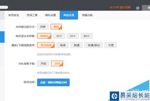 4、這時候我們看到有許多設(shè)置項目:文件展示的方式,每頁文件數(shù),下載線路選擇等。