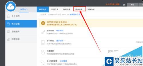3、進入賬號設(shè)置,我們會發(fā)現(xiàn)上方有一個“網(wǎng)盤設(shè)置”的選項,點擊網(wǎng)盤設(shè)置。
