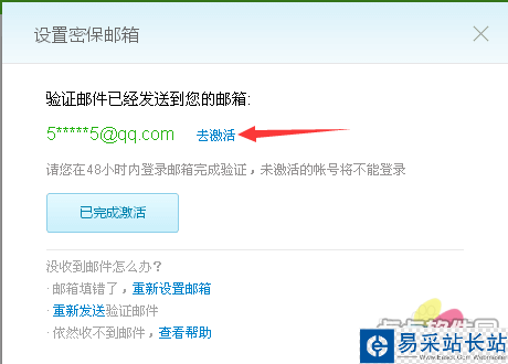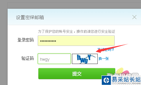 彈出一個設置密保郵箱的窗口,輸入密碼及驗證碼,提交