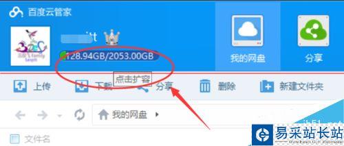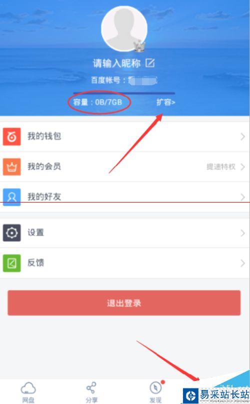 1、打開手機百度云,點擊關于我”,在頭像下面點擊擴容;