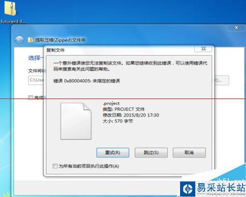 1、提取zip文件時,彈出提示“相同卷不能同時用于源和目標”,如圖: