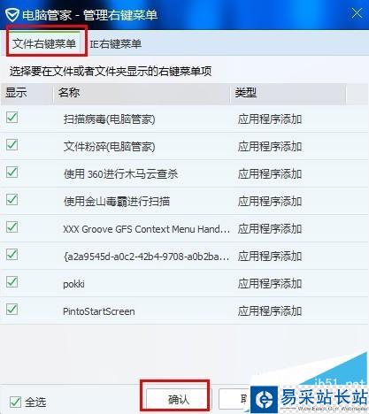 4、可以在管理右鍵菜單處設(shè)置文件右鍵菜單和IE右鍵菜單,如圖,自主可以選擇軟件設(shè)置。
