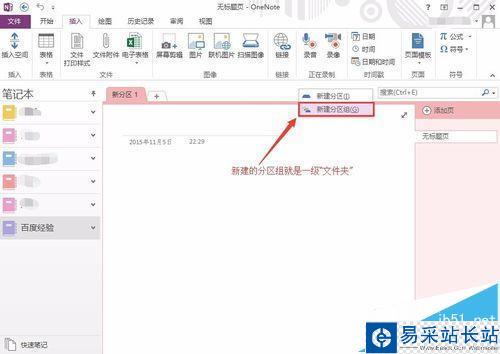 比起Evernote只有兩級文件夾的管理體系,OneNote是可以建立多級文件夾的,這樣我們可以通過OneNote更加自由科學的管理我們收集的知識的層次。OneNote的多級文件夾就是它支持的“分區組”。