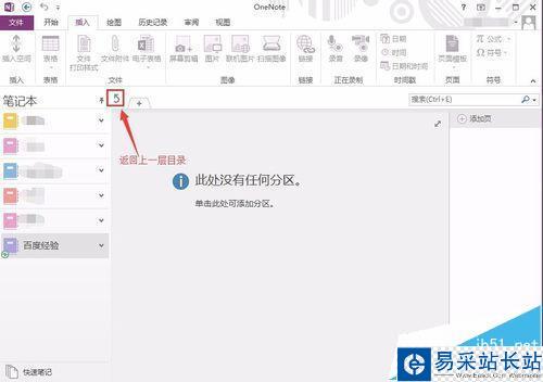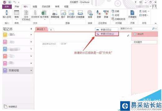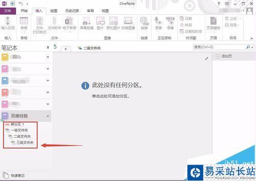 8、可以看到,在左側的“百度經驗”筆記本下層次圖中清晰的顯示出了三層分區的隸屬關系。點擊可以方便的切換到想瀏覽的分區。