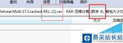5、打開后會在 winrar 的地址欄看到“RAR 壓縮分卷(數字 4)”這個“數字 4”就是此分卷的序號,如圖,那么就將此分卷文件名后面追加“.part04”
