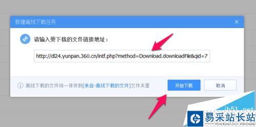 4、在360云盤離線下載中輸入正常的下載鏈接,然后點擊開始下載開始360網盤離線下載。
