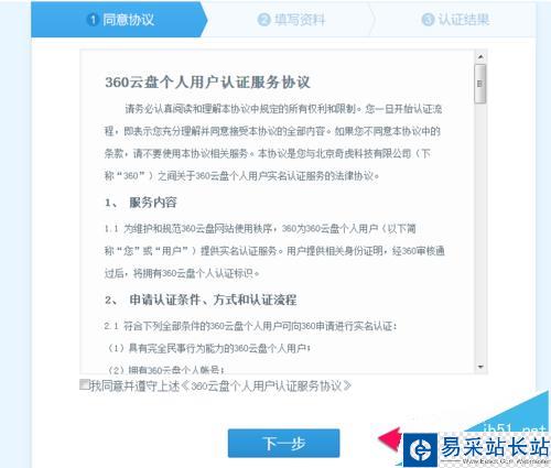 9、根據360云盤的提示,同意協議然后下一步,再根據提示填寫資料,最后認證成功以后我們就能安心的離線下載了。