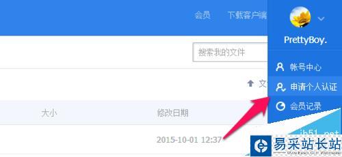8、我們在360云盤右上角自己的頭像,然后選擇申請個人認證就可以了。