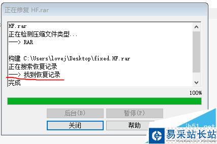 4、如果WinRAR在修復過程中找到了‘恢復記錄’的存在,就會使用恢復記錄來修復這個RAR文件,修復后的文件會以“fixed”開頭,解壓這個fixed開頭的壓縮包就可以解決文件破損的問題了。