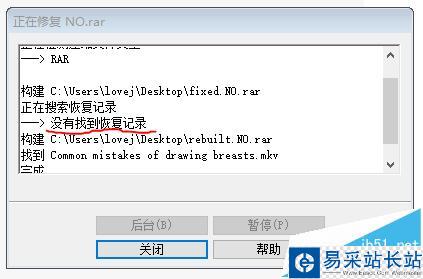 3、如果在修復過程中沒有找到‘恢復記錄’,軟件會嘗試重建一份相同的RAR壓縮包文件,重建的壓縮包會以“rebuilt”開頭,你可以試著解壓這個rebuilt開頭的壓縮包看看是否可行。