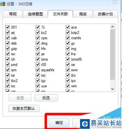 7、點擊下邊的確定就完成關聯,所以的壓縮包格式都關聯到360壓縮上邊了