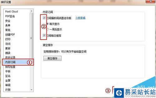 2、點開“偏好設(shè)置”,會出現(xiàn)如下對話框,找到“內(nèi)容訂閱”,將右側(cè)訂閱內(nèi)容前的勾號點掉。然后點擊“確定”即可。