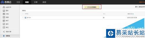 2、在網頁左中的位置會顯示我們現在所在的位置為回收站,在右側會顯示我們曾經刪除過的文件(文件名,大小,時間,回收站保存時間為10天)