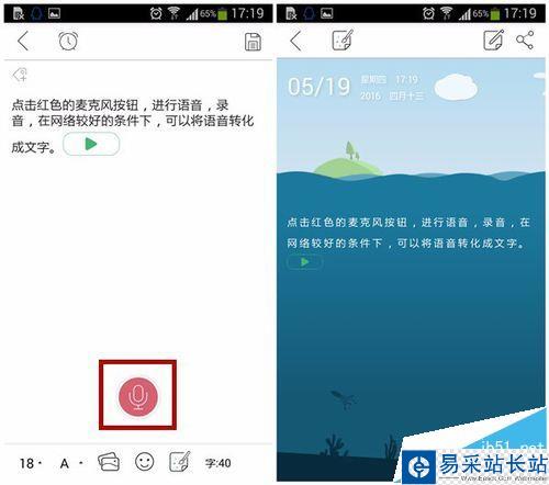 6、除了傳統的碼字方式,語音錄入是印記云筆記的一大特色。點擊紅色圓形麥克風按鈕說話,松開手后,在聯網狀態下會自動翻譯成文字,比較準確。時間緊急又需要記錄的時候(如記錄靈感),可以試試。